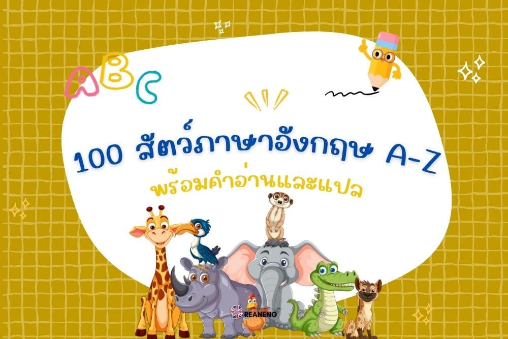100 สัตว์ภาษาอังกฤษ A-Z ไม่เพียงช่วยพัฒนาคำศัพท์ แต่ยังทำให้คุณสามารถสนทนาเรื่องธรรมชาติ สัตว์โลก และเรื่องรอบตัวได้อย่างมั่นใจ พร้อมทั้งฝึกออกเสียงจากคำอ่านไทยให้ใกล้เคียงเจ้าของภาษา รู้จักสัตว์โลกผ่านภาษาอังกฤษ การเรียนรู้ชื่อสัตว์เป็นภาษาอังกฤษเป็นพื้นฐานสำคัญในการพัฒนาทักษะภาษา ไม่ว่าจะเป็นสำหรับเด็กที่เริ่มต้นเรียนภาษาอังกฤษ หรือผู้ใหญ่ที่ต้องการเสริมความรู้ บทความนี้รวบรวมชื่อสัตว์ 100 ชนิดเรียงตามตัวอักษร A-Z พร้อมคำอ่านภาษาไทยและความหมาย ประโยชน์ของการเรียนรู้ชื่อสัตว์ภาษาอังกฤษ พัฒนาคำศัพท์ เพิ่มความหลากหลายของคำศัพท์ในการสื่อสาร เสริมทักษะการฟัง-พูด ฝึกการออกเสียงที่ถูกต้อง ใช้ในชีวิตประจำวัน สามารถนำไปใช้ในการดูสารคดี การเดินทาง หรือการสื่อสารทั่วไป พื้นฐานการเรียนต่อ เป็นความรู้พื้นฐานสำหรับการเรียนวิทยาศาสตร์และภูมิศาสตร์ รายชื่อสัตว์ 100 ชนิด เรียงตาม A-Z สัตว์ A-C ภาษาอังกฤษ คำอ่านไทย ความหมาย Alligator แอลิเกเตอร์ จระเข้อเมริกัน Ant แอนท์ มด Anteater แอนท์อีเตอร์ ตัวกินมด Antelope แอนเทโลป ละมั่ง Ape เอป ลิงไม่มีหาง Armadillo อาร์มาดิลโล […]